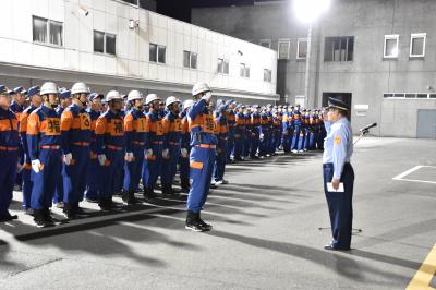 第7分団が日頃の訓練の成果を市長や消防団の方に披露していました。