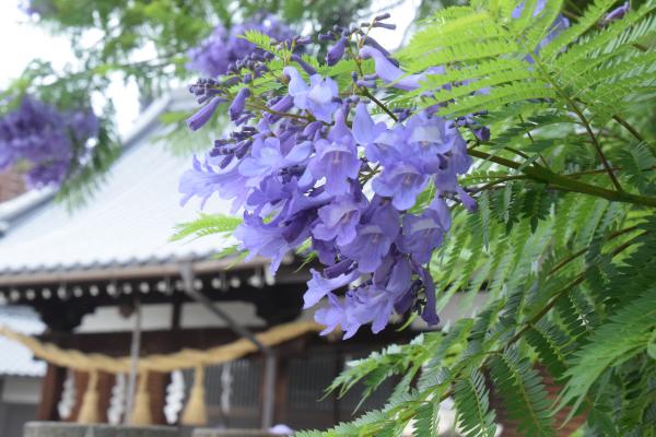 市民の方から情報提供がありました。「金倉寺に『ジャカランダ』という珍しい木が植えられていて花が咲いている。」とのこと。調べてみると、ジャカランダはむらさき色の花が美しい南米原産の花木で、カエンボク、ホウオウボクと並び世界三大花木にも数えられるそう。