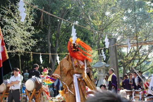 獅子二頭。太鼓、地太鼓、大鉦、のぼり旗、花笠。(香川県の民俗芸能-平成八・九年度 香川県民俗芸能緊急調査報告書- 平成十年三月瀬戸内海歴史民俗資料館の調査より)