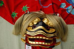 平成26年取材時には、獅子2頭、和太鼓2つ、平太鼓2つ、鉦2つの構成でした。また、ダカも確認しています。なお、この獅子組は村遣いの際に3頭の獅子をつかいます。また、獅子組の中でのみ見ることができる白い毛獅子がいます。