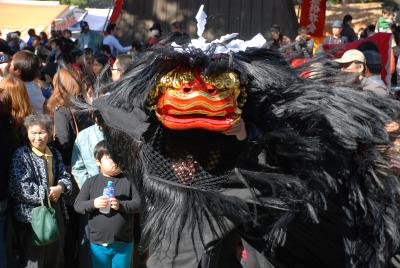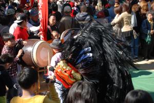 東原の獅子舞のなかで、使い手が肩車をするシーンがありました。