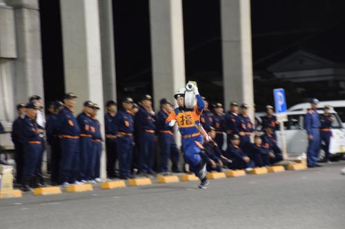日頃の訓練の成果を市長や消防団の方に披露していました。